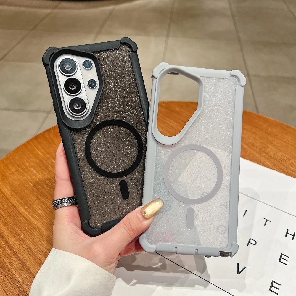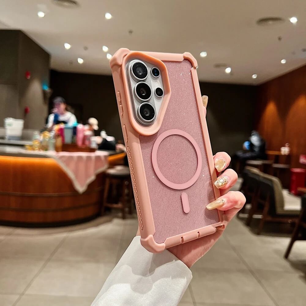 The glitter back, magnetic alignment ring, and shock-absorbing frame come together in a protective design made for the Samsung Galaxy S26 Series.
