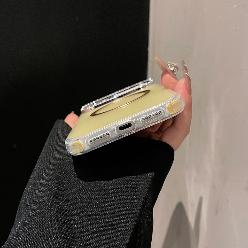 Around the camera, the faux diamond frame is the first thing you notice. It sits slightly proud of the lenses, catching light without looking fragile. The stones follow the exact shape of the module, so the whole section looks reinforced rather than ornamental. Corners stay tight, buttons press clean, and the finish stays dry to the touch even after long use.